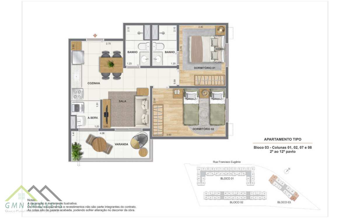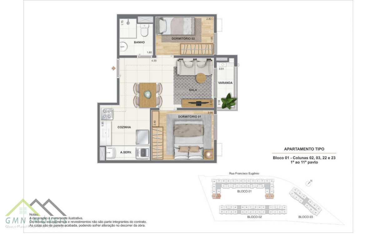 Apartamentos à venda com 1 e 2 quartos com varanda e opção de suíte. Conheça o Residencial Cartola com a Cury Construtora!