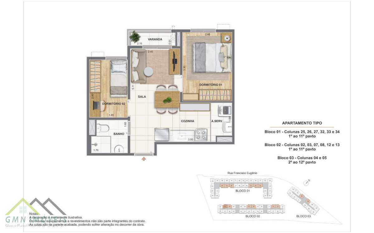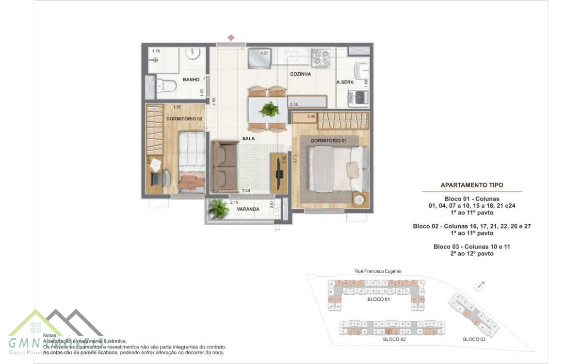 Apartamentos de 1 ou 2 quartos Residencial Cartola